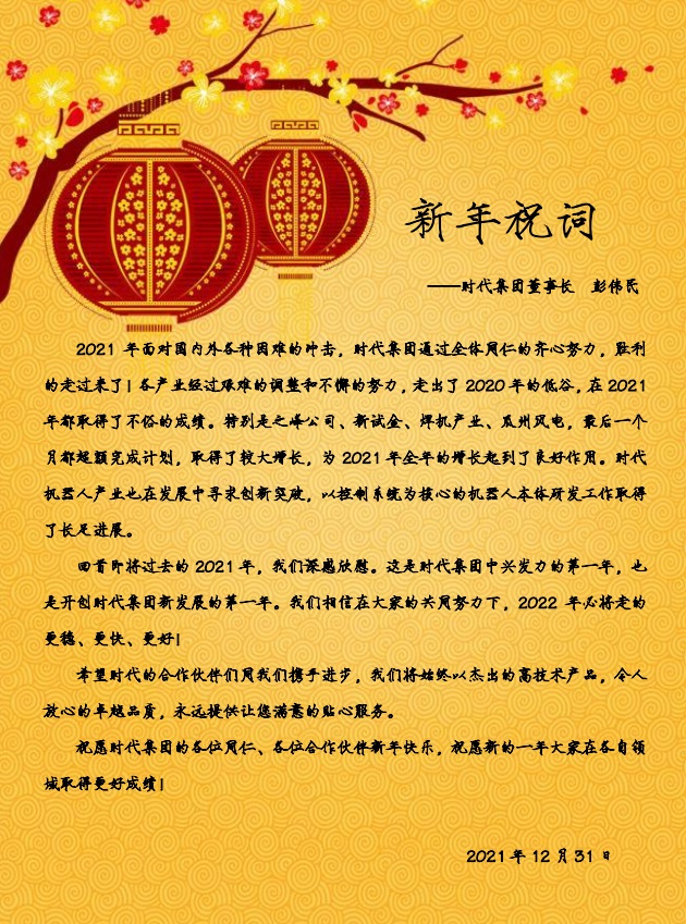 時(shí)代集團(tuán)董事長(zhǎng)彭偉民 —發(fā)表新年祝詞